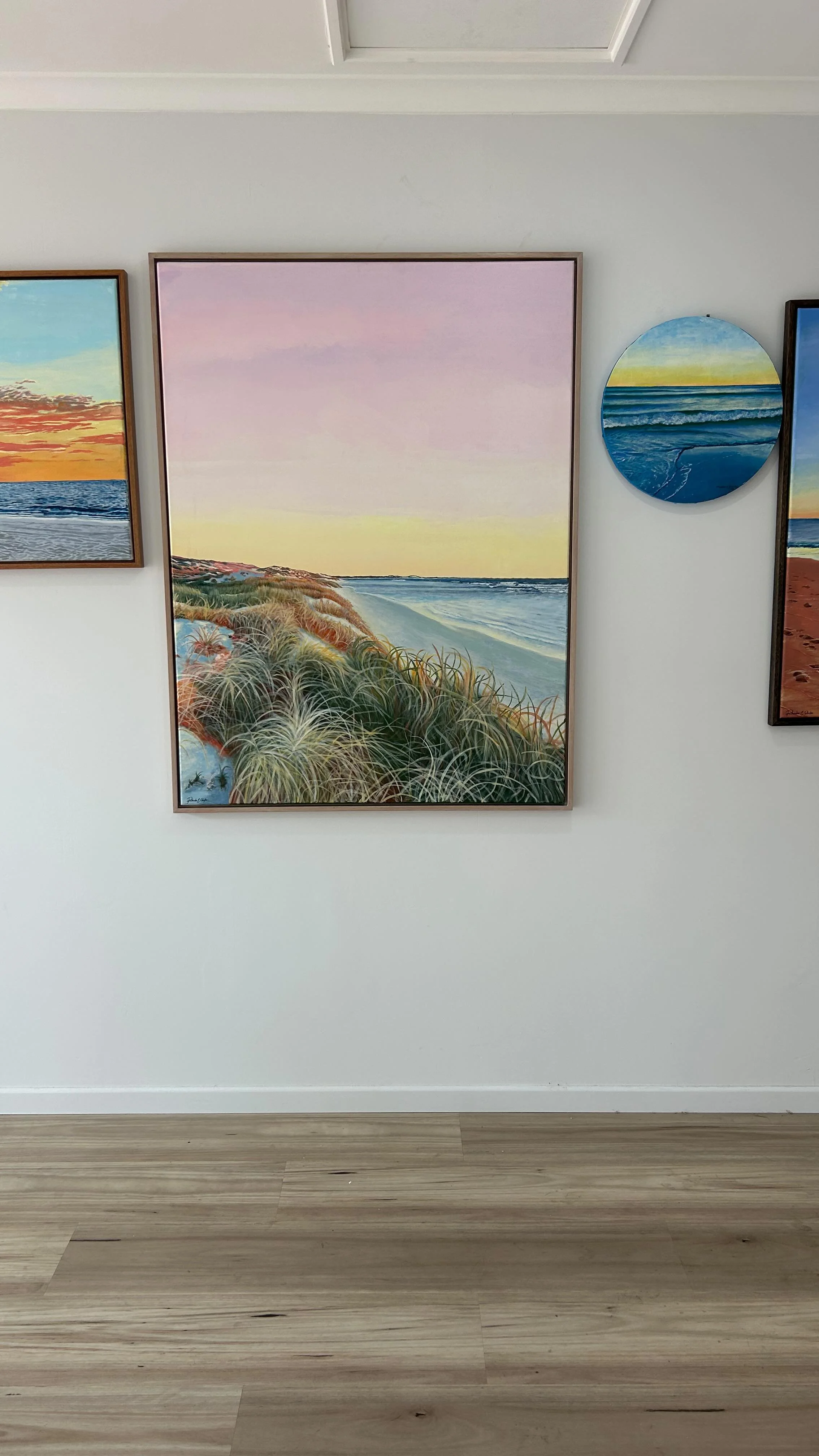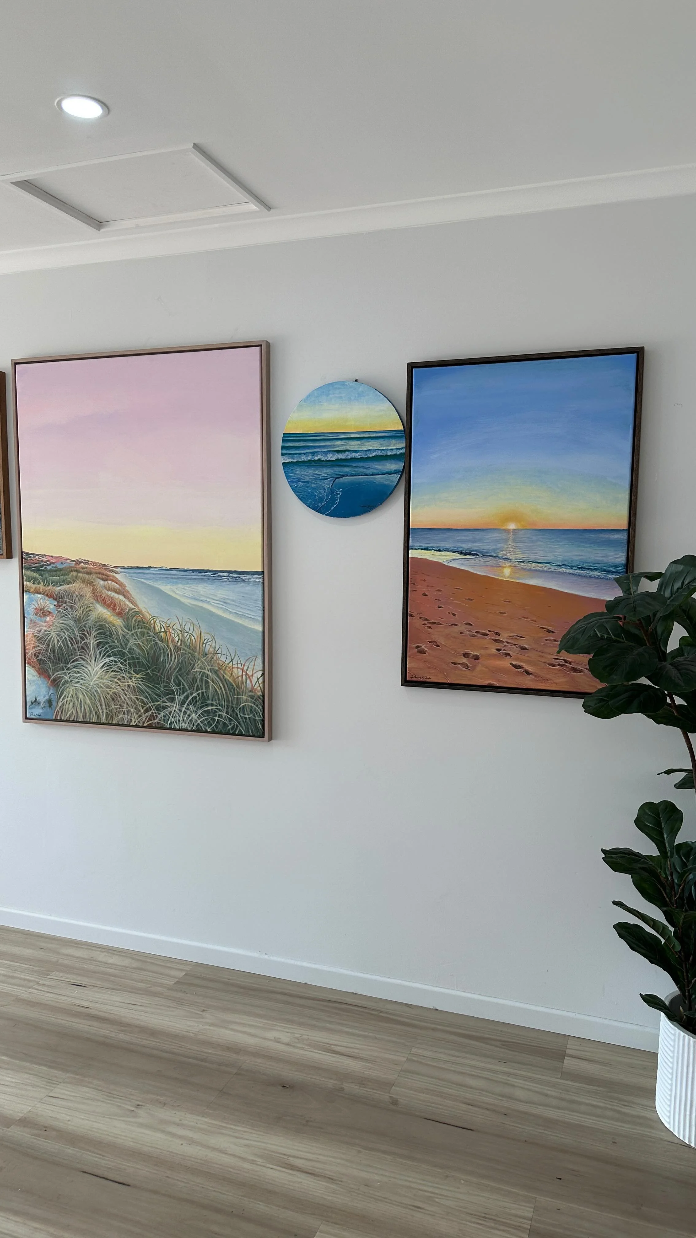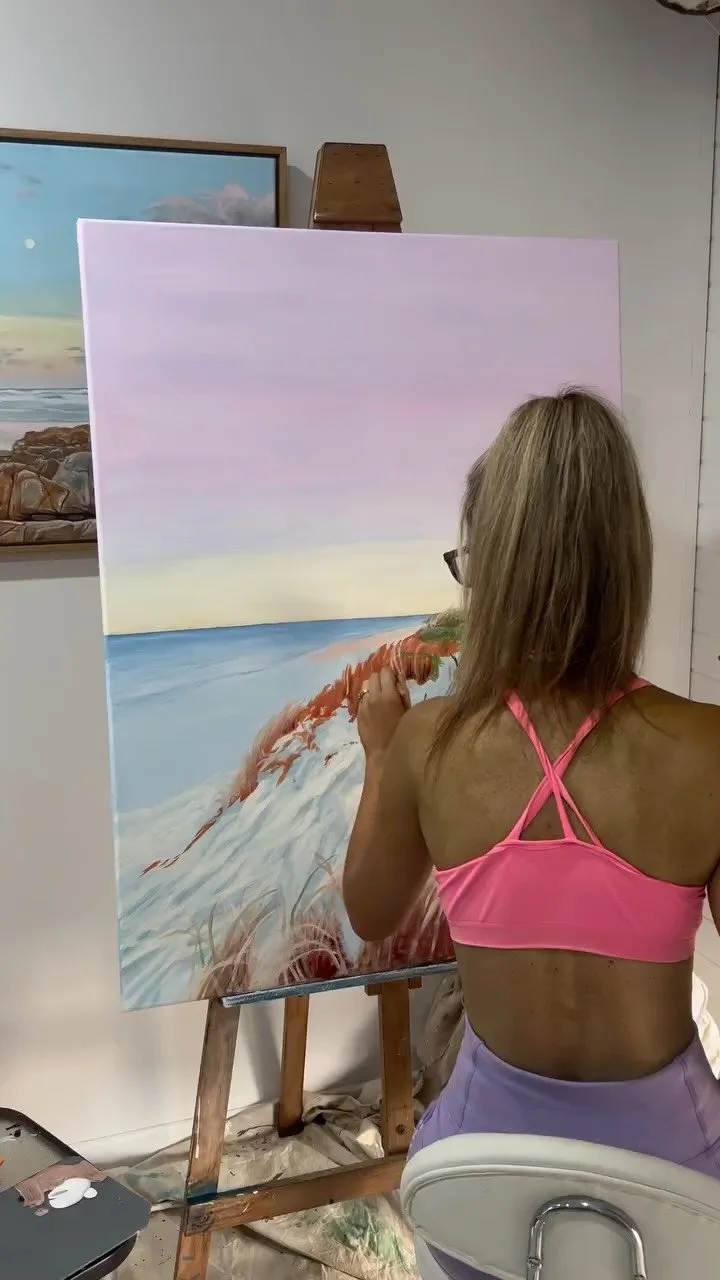 Phoebe Clarke is a 26-year-old legally blind painter from Coolum Beach whose expressive realism celebrates the beauty of the world through vibrant colour. Her love for art began in childhood while undergoing treatment for leukemia, when painting became a source of comfort and creativity. Growing up on the coast and spending every day by the ocean inspired her deep connection to the sea and her passion for painting seascapes. A mum of two and an adventurer at heart, Phoebe has travelled around Australia a couple of times, drawing inspiration from its diverse landscapes and coastal towns. Through her work, she captures the feeling of freedom, gratitude, and adventure that comes from truly seeing the world through her eyes.